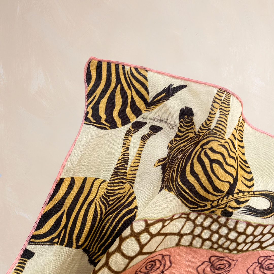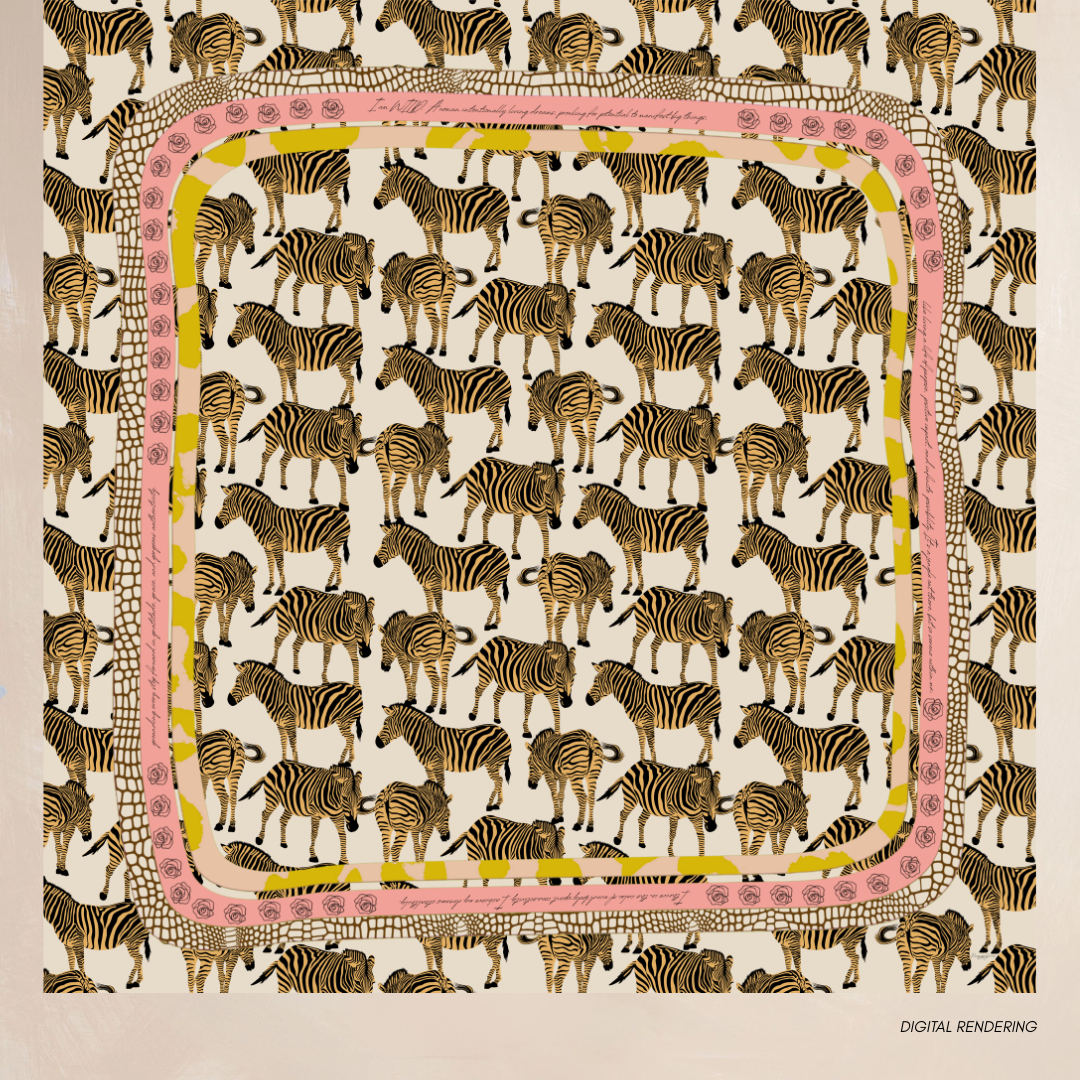 BEIGE ZEBRA | Flower Qrown Satin Affirmation Scarf