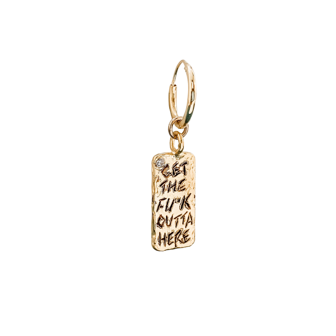 ThIs gorgeous “Get The Fuck Outta Here” singlet earring reminds you that you can make things mean whatever makes you feel good. Whether the phrase represents demanding the respect you deserve or noticing something so good you can hardly believe it’s true, it makes a bold style statement that honors the power of personal perception in a playful and pretty way!