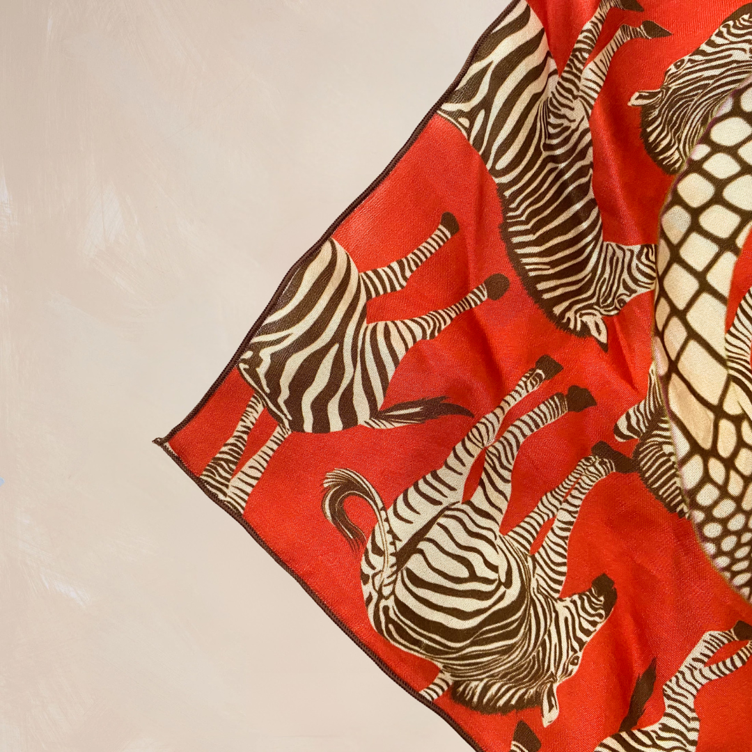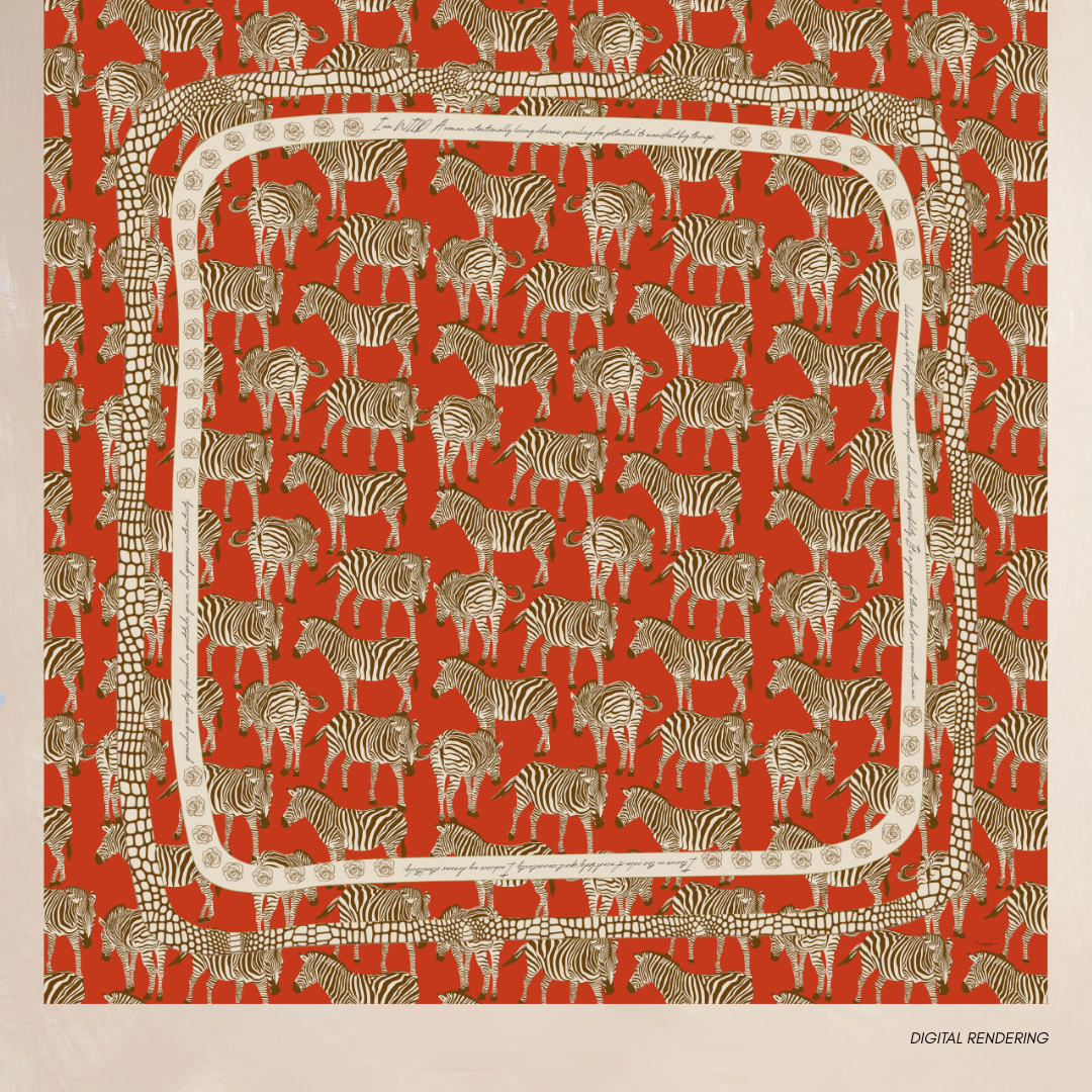 RED ZEBRA | Flower Qrown Satin Affirmation Scarf