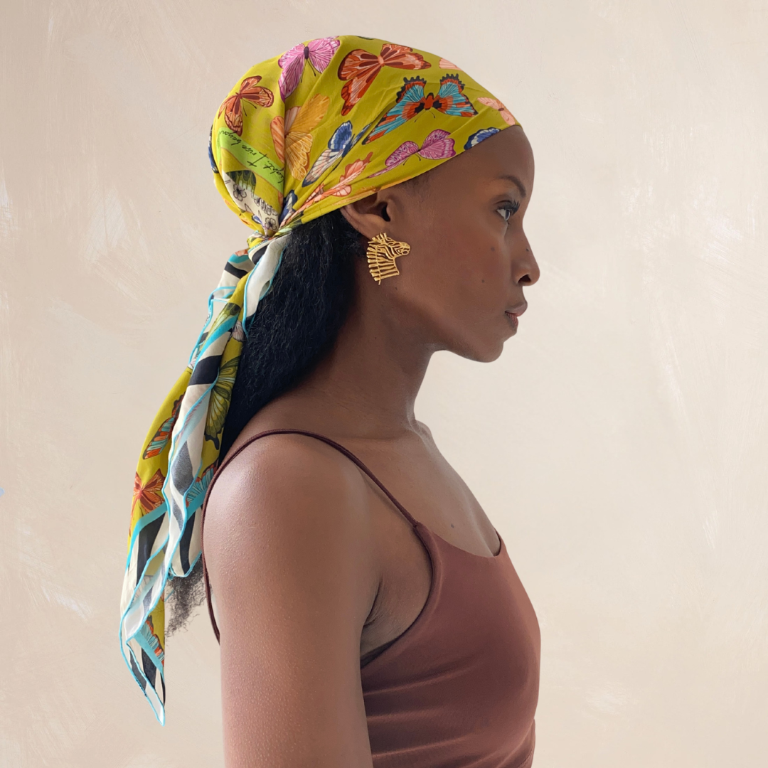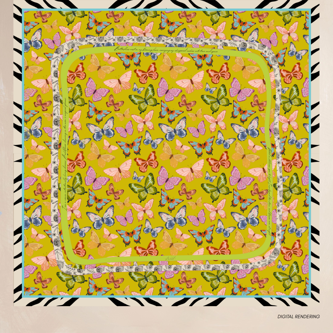 BUTTERFLY ZEBRA | Flower Qrown Satin Affirmation Scarf
