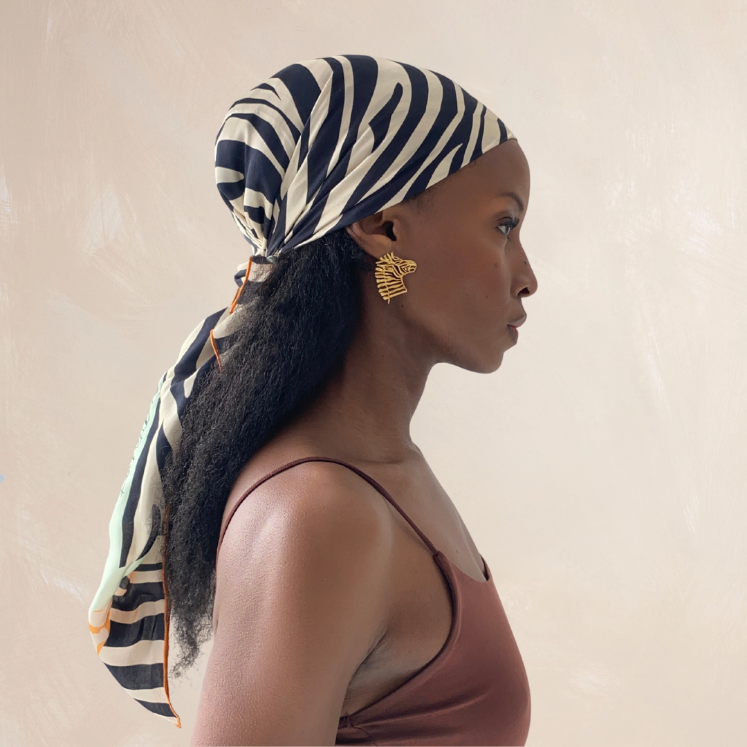 ZEBRA STRIPES | Flower Qrown Satin Affirmation Scarf